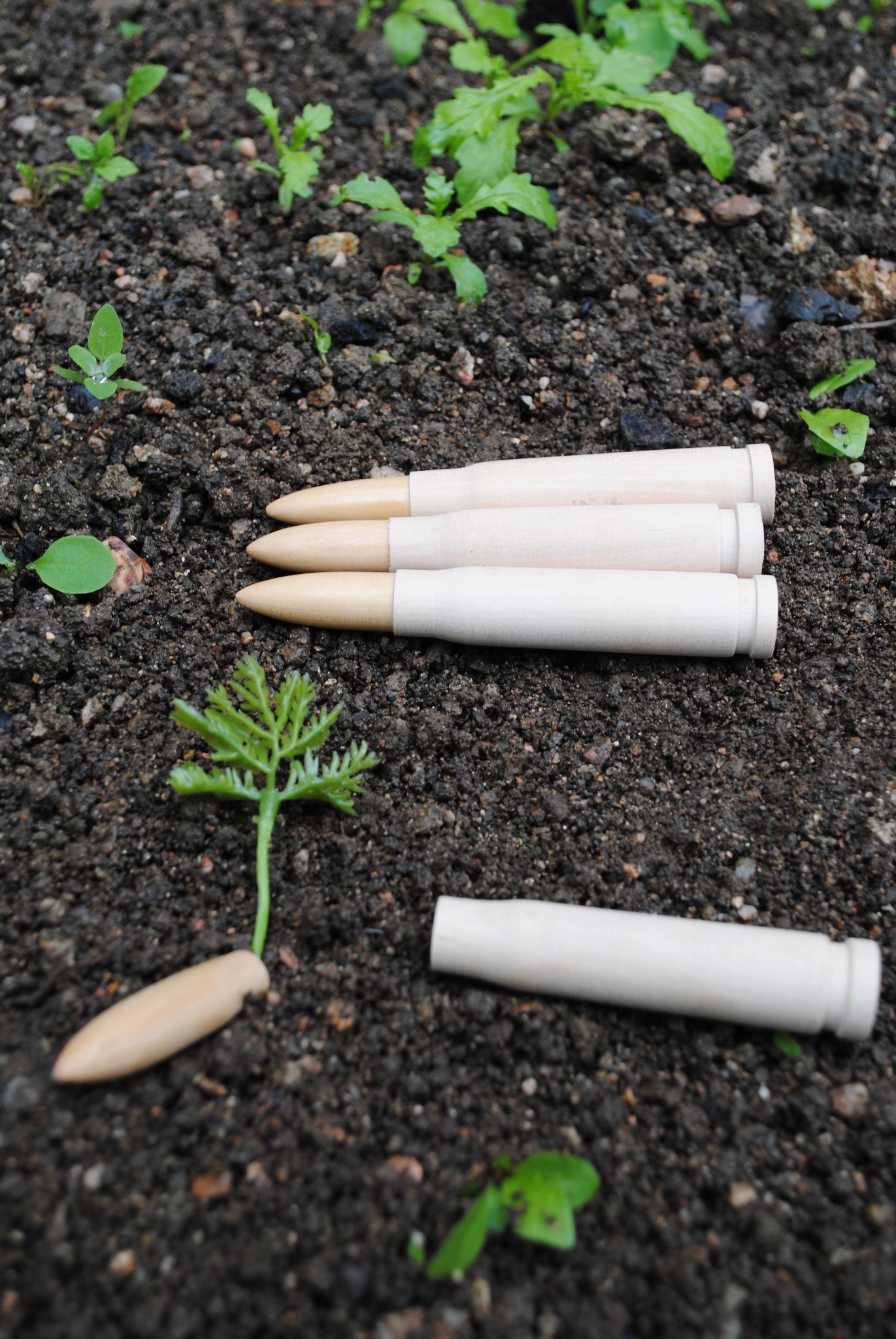 Many scenarios are possible; lost bullets, bodies left in battlefields and mass graves might all potentially give life to whole forests. An offshoot can also be sent to the soldier’s family along with his ID tag, making it possible to plant it in one’s garden, keeping the memory alive for generations. The seeds contained in the bullet are of different species. Hence a large variety of forests will take place after every war.